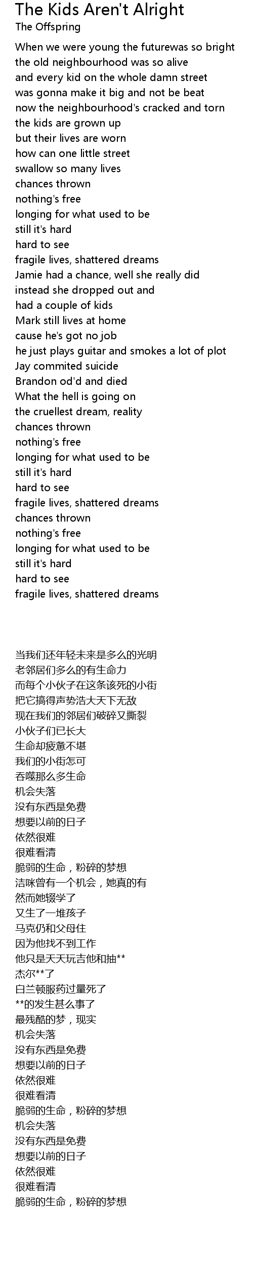 When we were young the futurewas so bright |