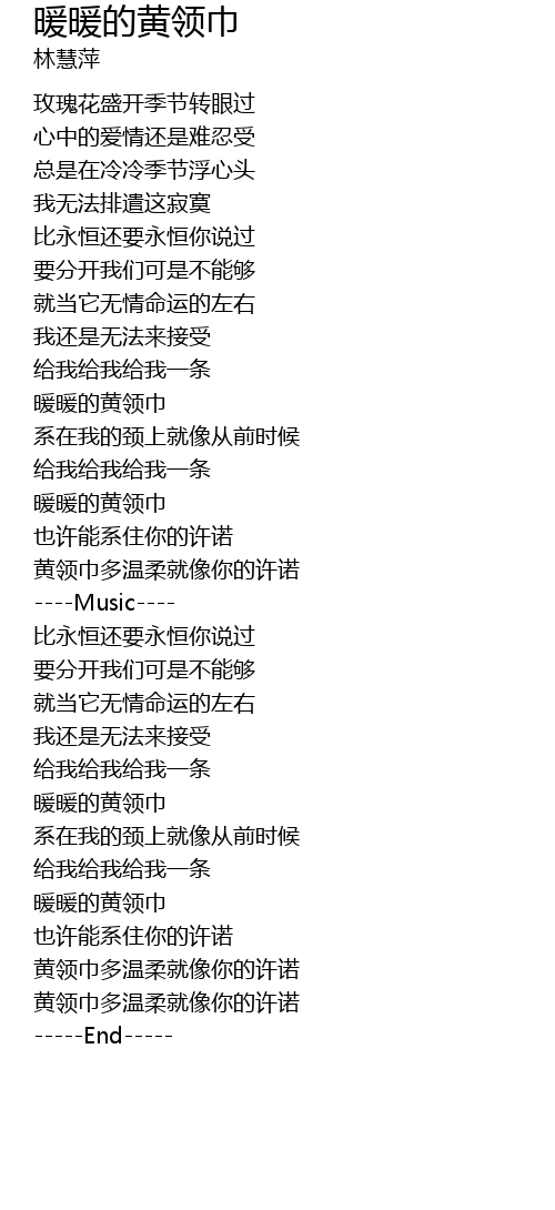 | [02:45.85] | 黄领巾多温柔就像你的许诺 |