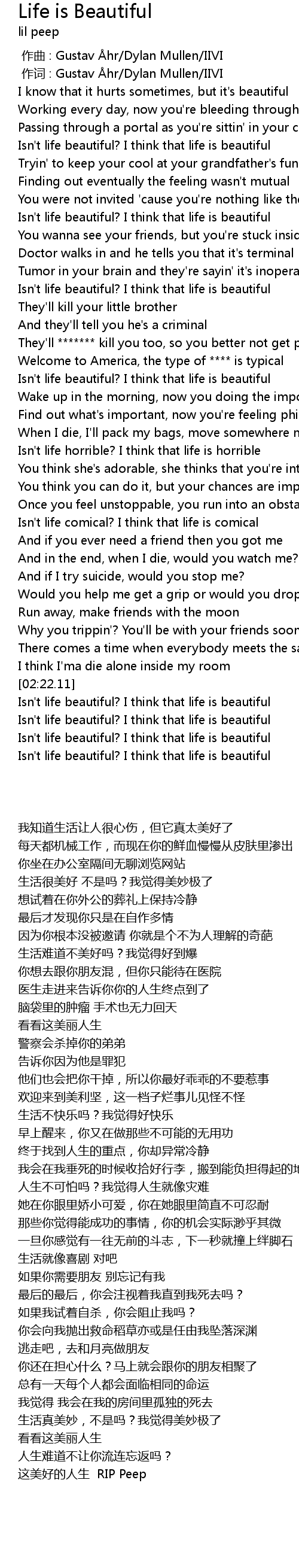 | [03:18.70] | Isn't life beautiful? I think that life is beautiful |