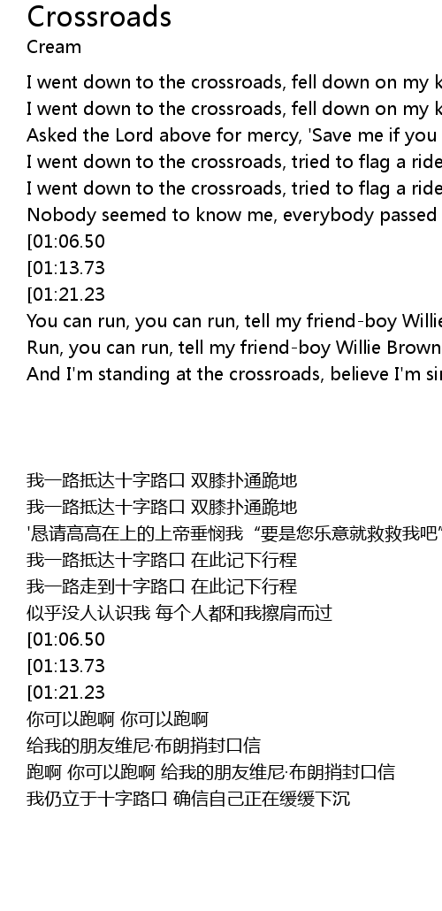 And I'm standing at the crossroads, believe I'm sinking down. |