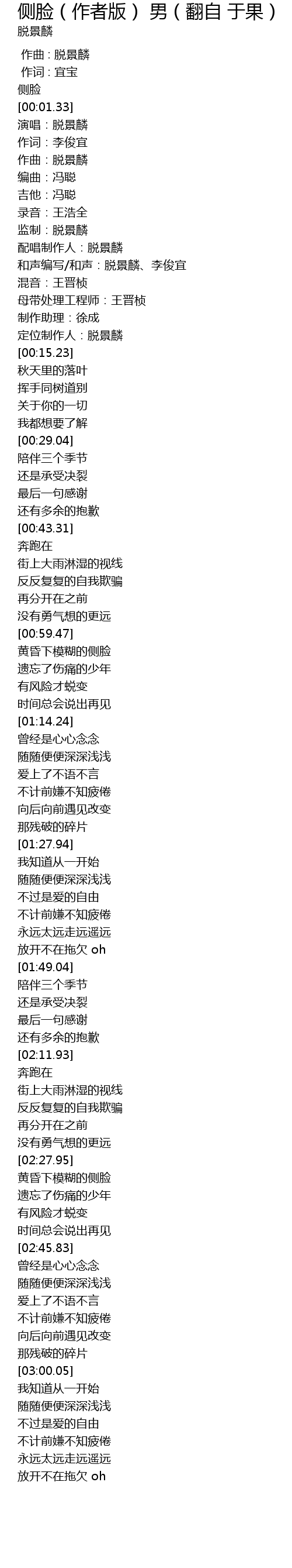 | [00:09.91] | 配唱制作人:脱景麟 |