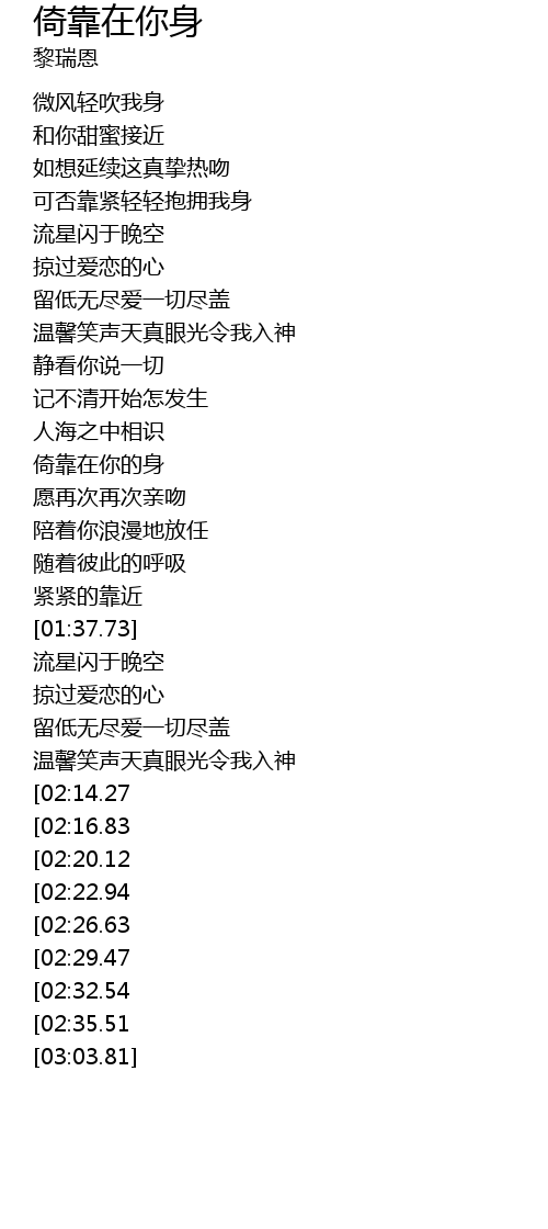 | [02:47.55][02:22.94] | 倚靠在你的身 |