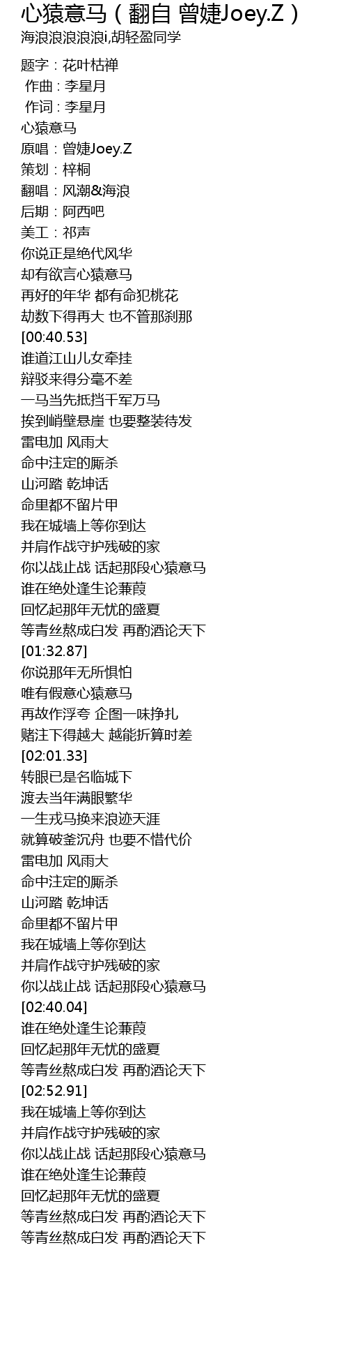 | [00:00.20] | yuan chang: ceng jie Joey. Z |