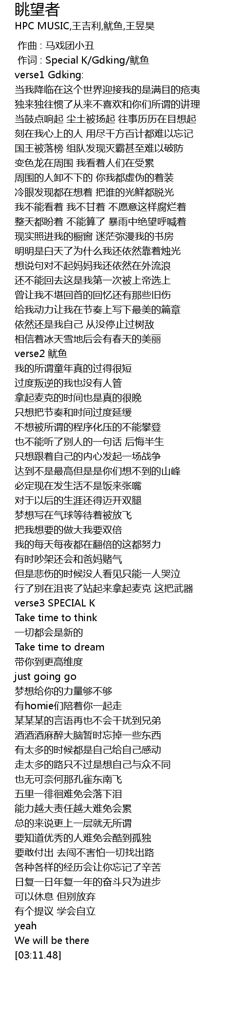 | [00:01.000] | 作词 : Special K/Gdking/鱿鱼 |