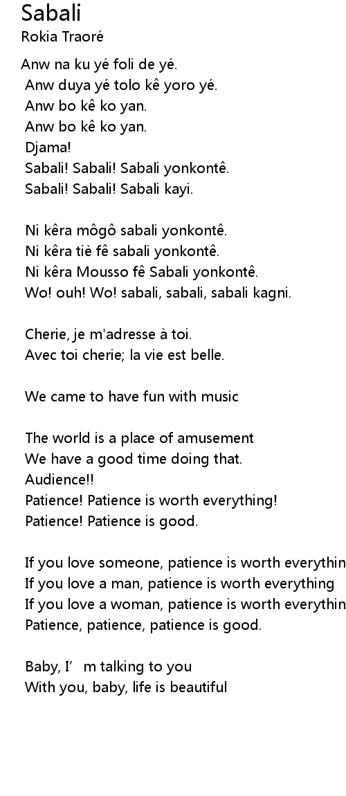 | Ni kêra Mousso fê Sabali yonkontê. | |