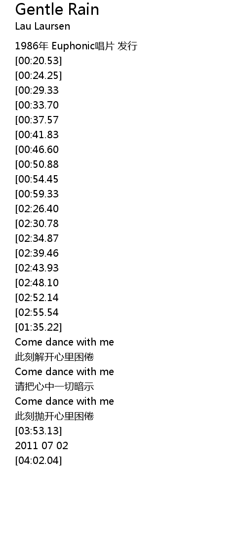 | [03:27.42][02:26.40][01:02.88] | Come dance with me |