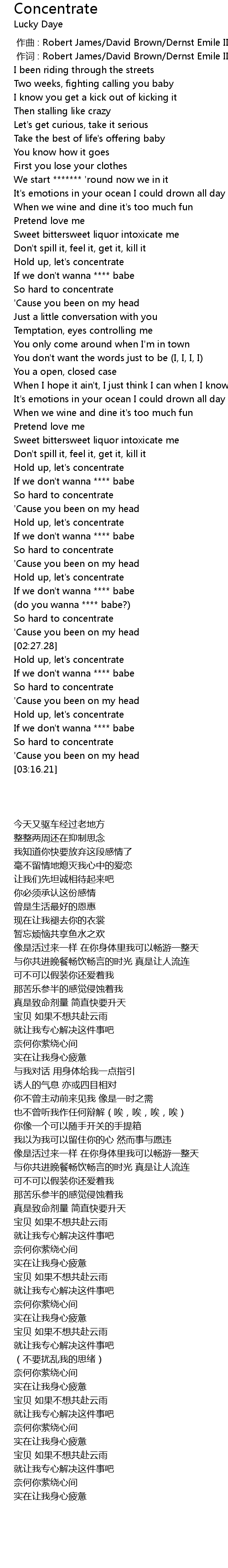 | [01:35.12] | Don't spill it, feel it, get it, kill it |