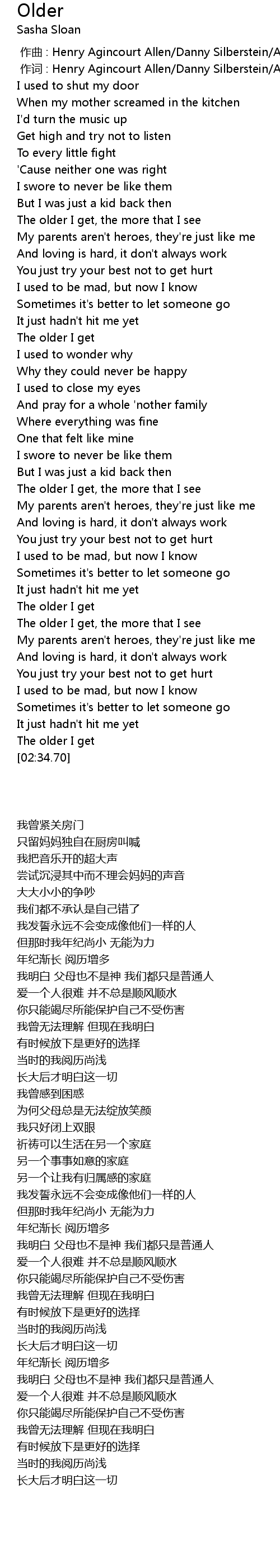 | [02:32.35] | The older I get |