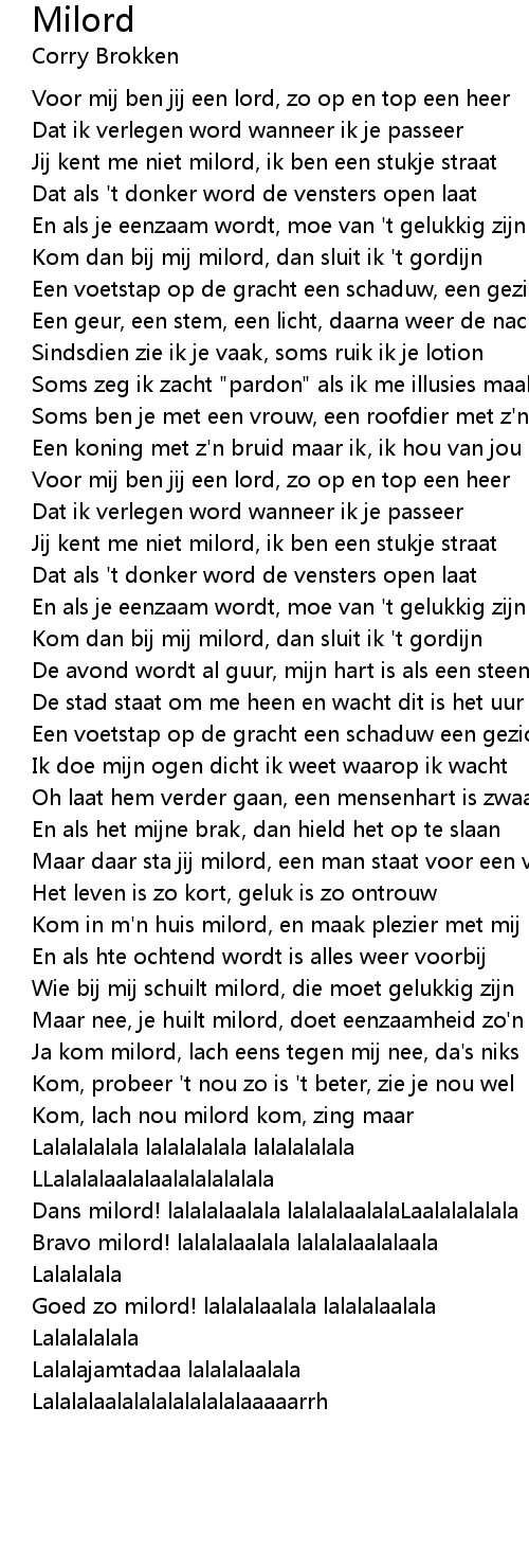 Ja kom milord, lach eens tegen mij nee, da's niks |