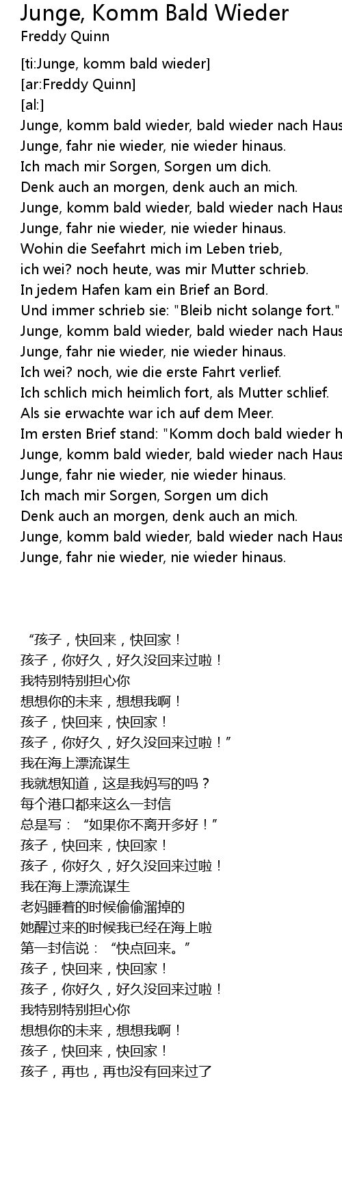 Junge, komm bald wieder, bald wieder nach Haus. |