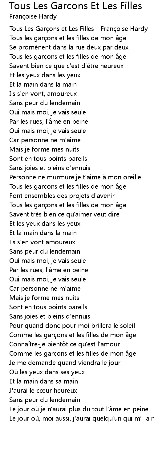 | [00:00.00] | Tous Les Gar ons et Les Filles Fran oise Hardy |