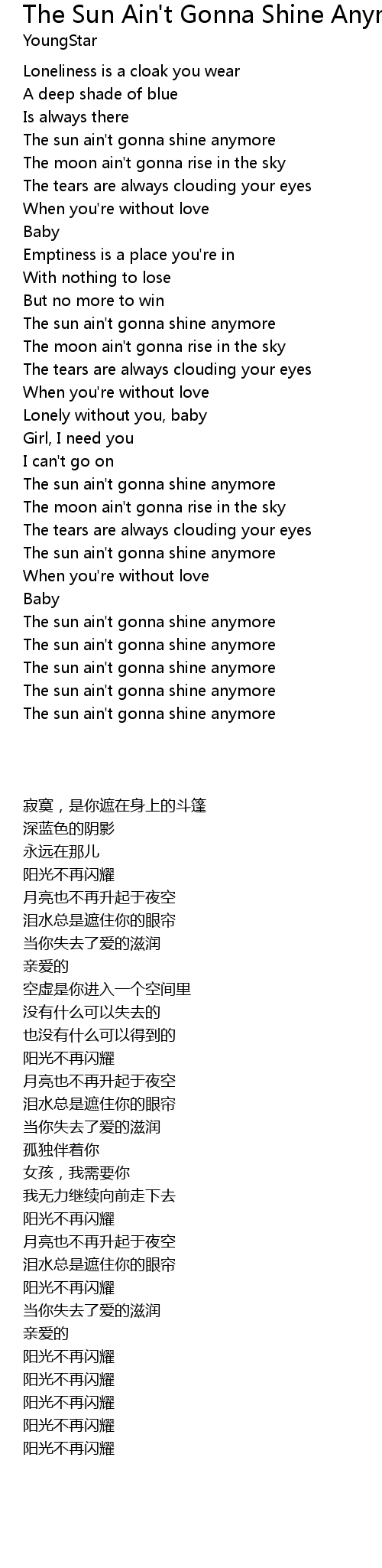 The Sun Ain't Gonna Shine Anymore Lyrics
