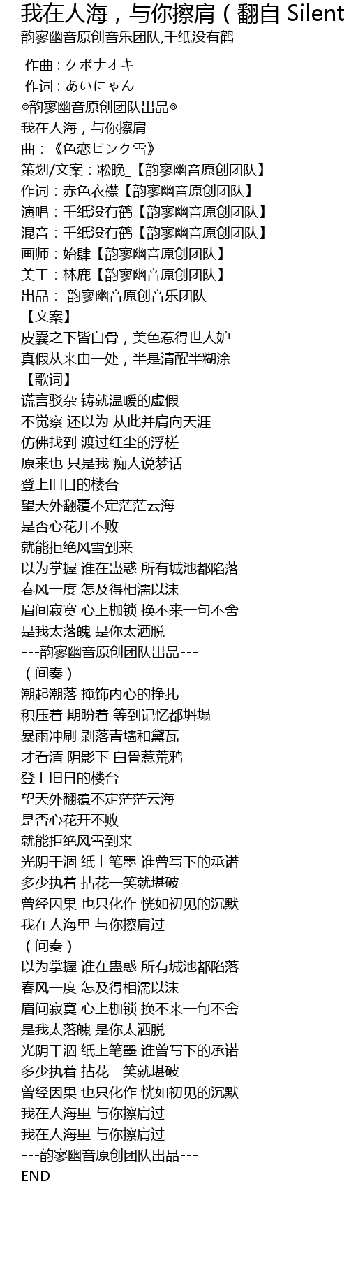 | [03:58.9] | ---韵寥幽音原创团队出品--- |