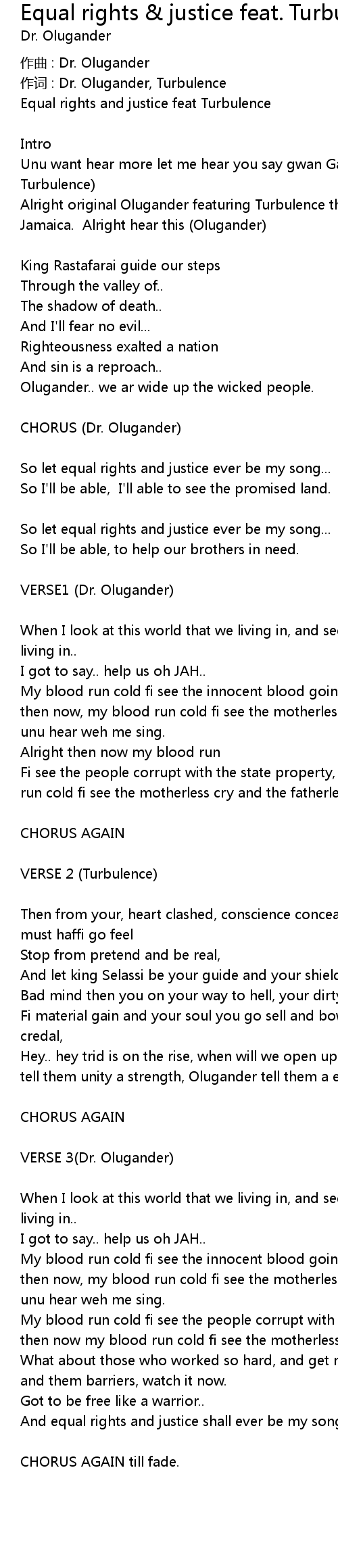 | My blood run cold fi see the innocent blood going down the streets.. Alright then now, my blood run cold fi see the motherless cry and the fatherless weep.. unu hear weh me sing. | |
