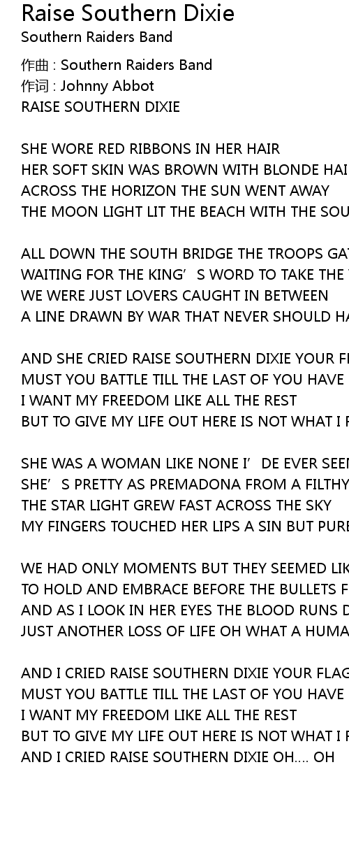 | AND SHE CRIED RAISE SOUTHERN DIXIE YOUR FLAG UP TO THE SKY | |