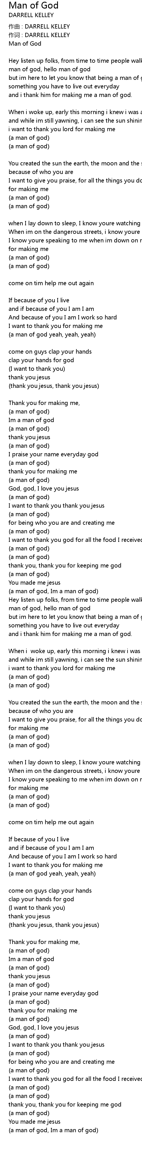 | (a man of god, Im a man of god) | |