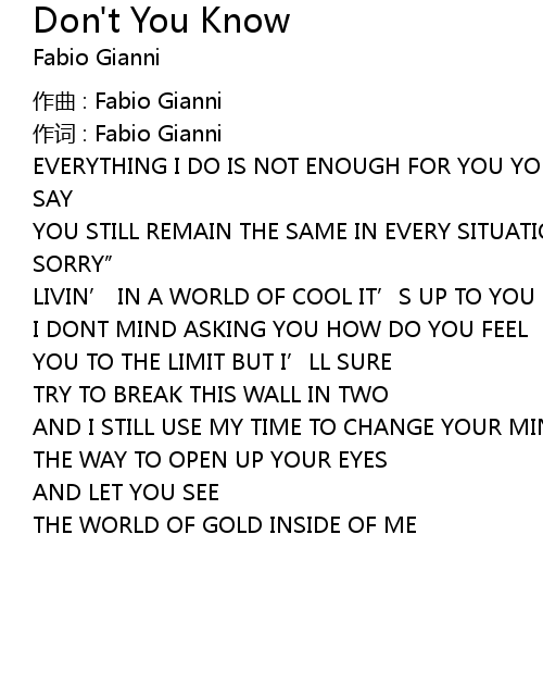 | EVERYTHING I DO IS NOT ENOUGH FOR YOU YOU DON' T REALLY CARE ' BOUT THINGS I SAY | |