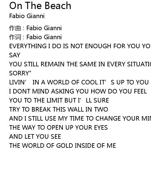 | Song | On The Beach |