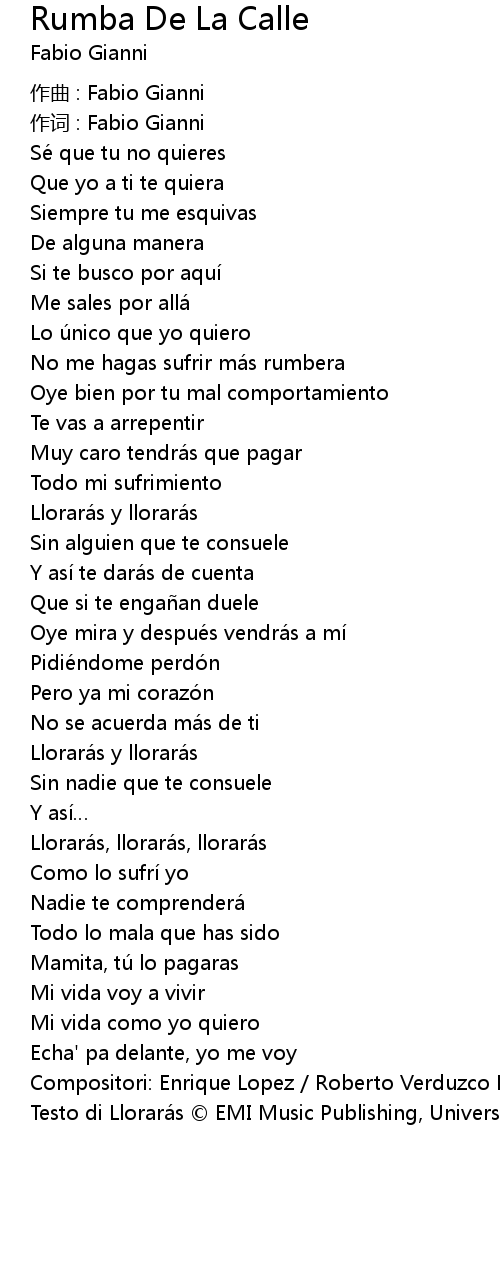 | Testo di Llorarás © EMI Music Publishing, Universal Music Publishing Group |