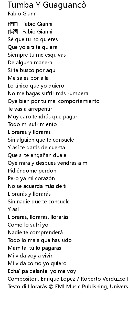 | Testo di Llorarás © EMI Music Publishing, Universal Music Publishing Group |