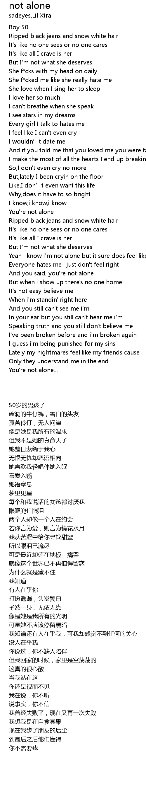 | [01:53.39] | And you said, you' re not alone |