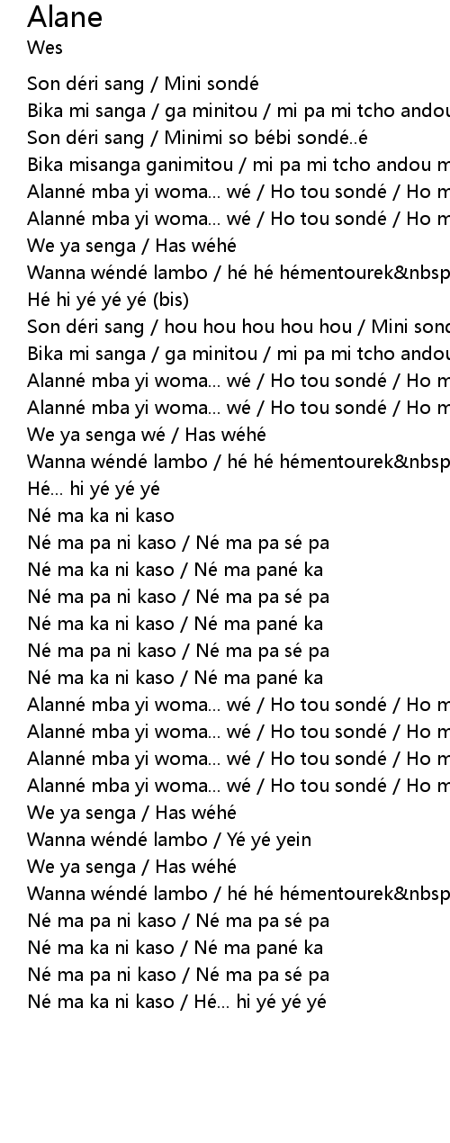 | Alanné mba yi woma... wé Ho tou sondé Ho ma... yé | |