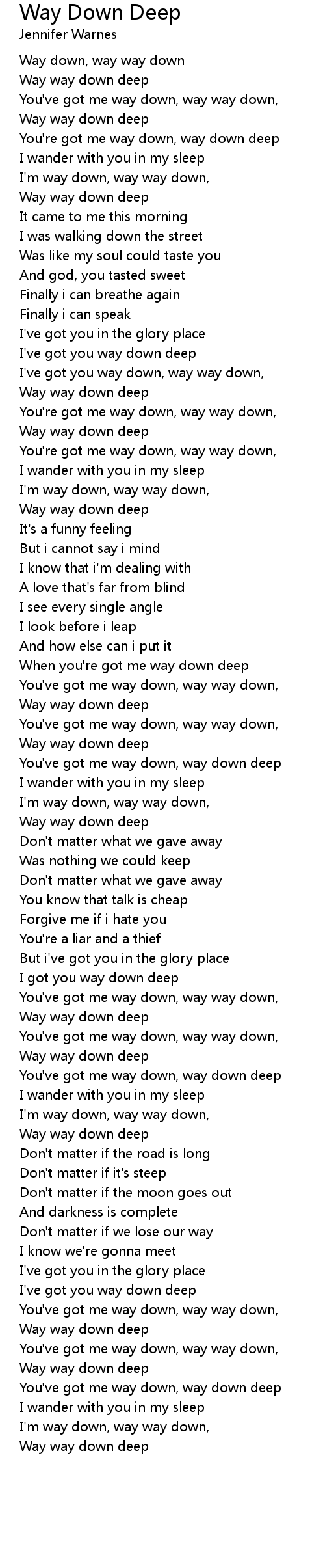 | You're got me way down, way down deep | |