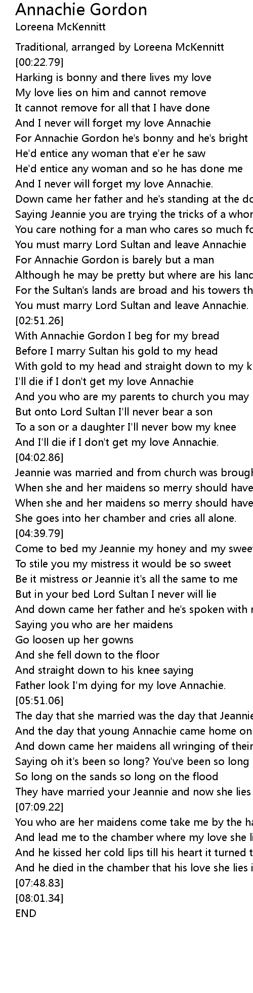 [03:52.83] And I'll die if I don't get my love Annachie.