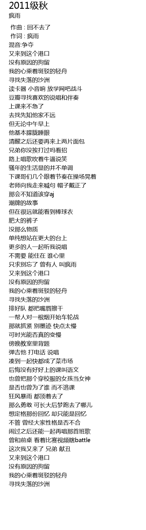 | [01:17.290] | 只求别忘了 曾有人 叫疯雨 |