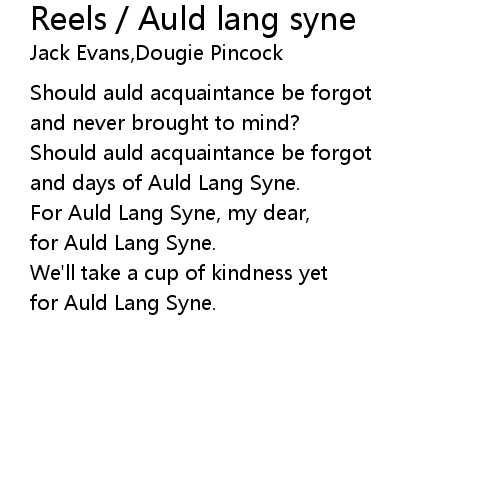 | for Auld Lang Syne. |