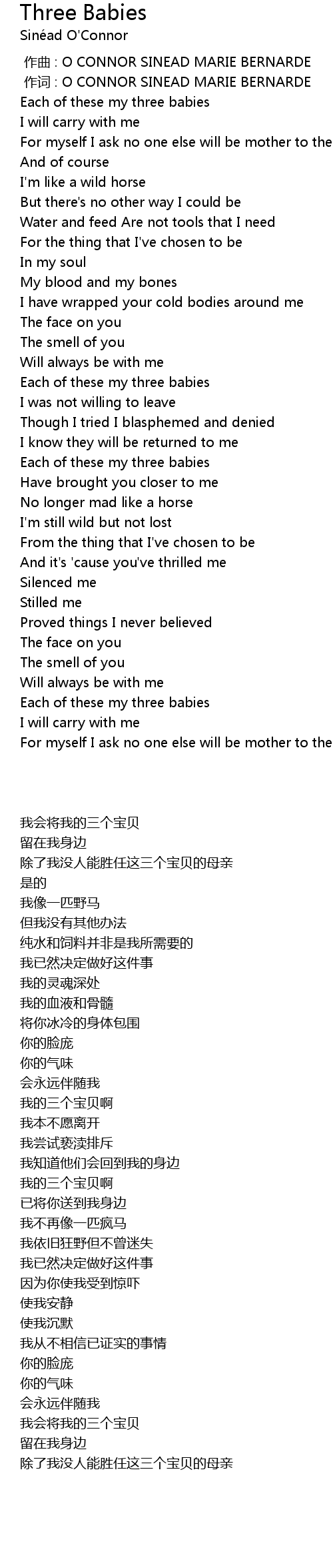 | [00:00.00] | 作曲 : O CONNOR SINEAD MARIE BERNARDE |