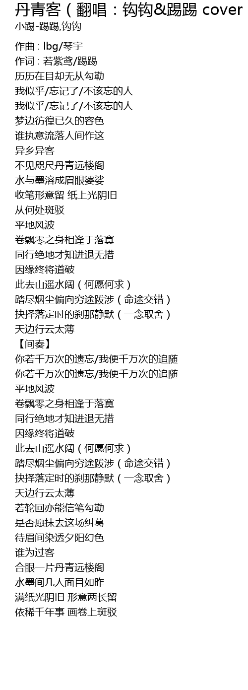 | 作词 : 若紫鸢/踢踢 | |