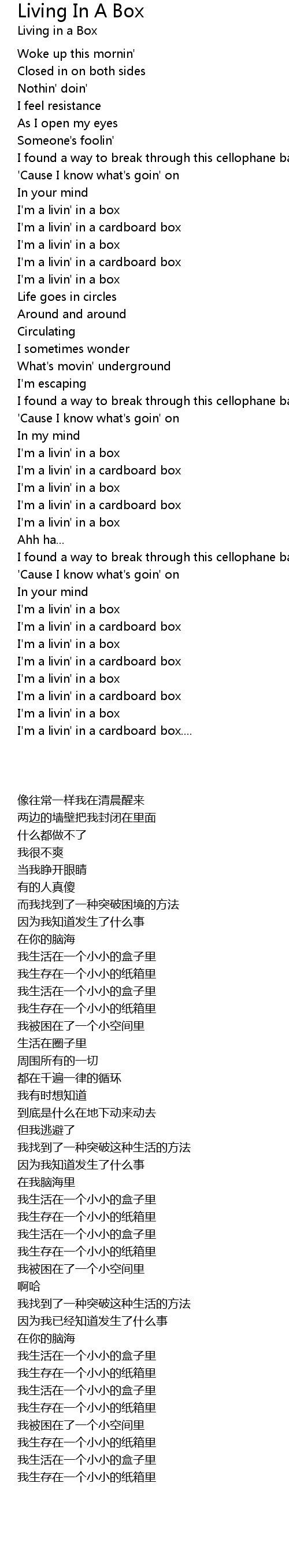 I'm a livin' in a box |