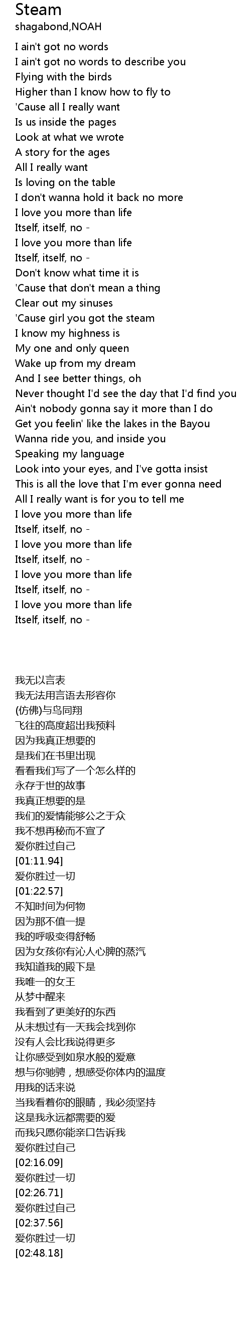 | [01:33.59] | 'Cause girl you got the steam |