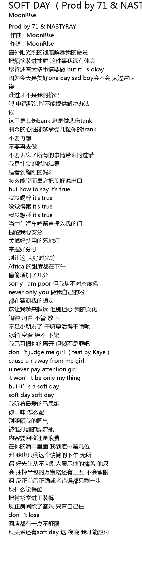 | [02:40.251] | 没关系还有soft day 这 夜晚 我才能应付 |