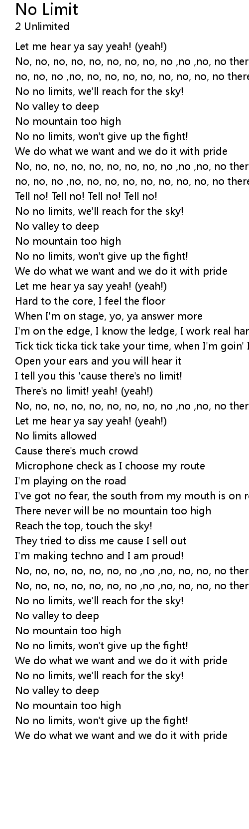 I tell you this 'cause there's no limit! |