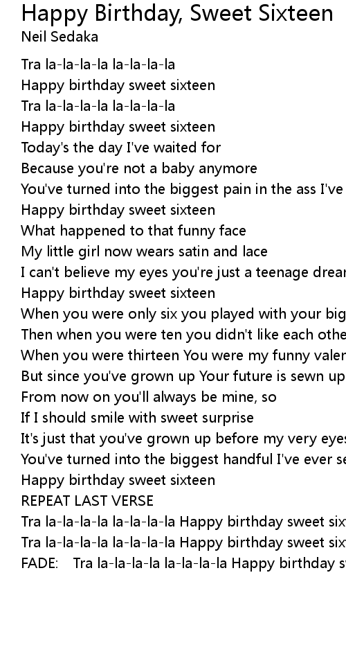 | Tra la-la-la-la la-la-la-la Happy birthday sweet sixteen | |