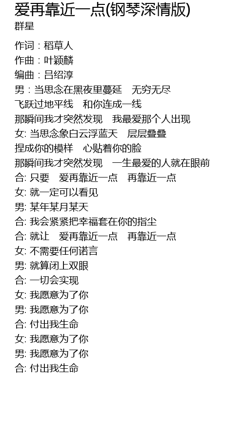 | 合: 只要 爱再靠近一点 再靠近一点 | |