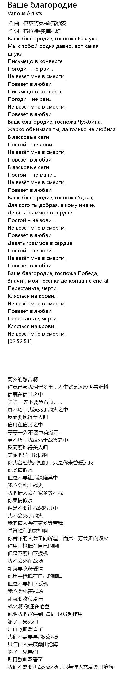 作词 : 布拉特•奥库扎娃 |