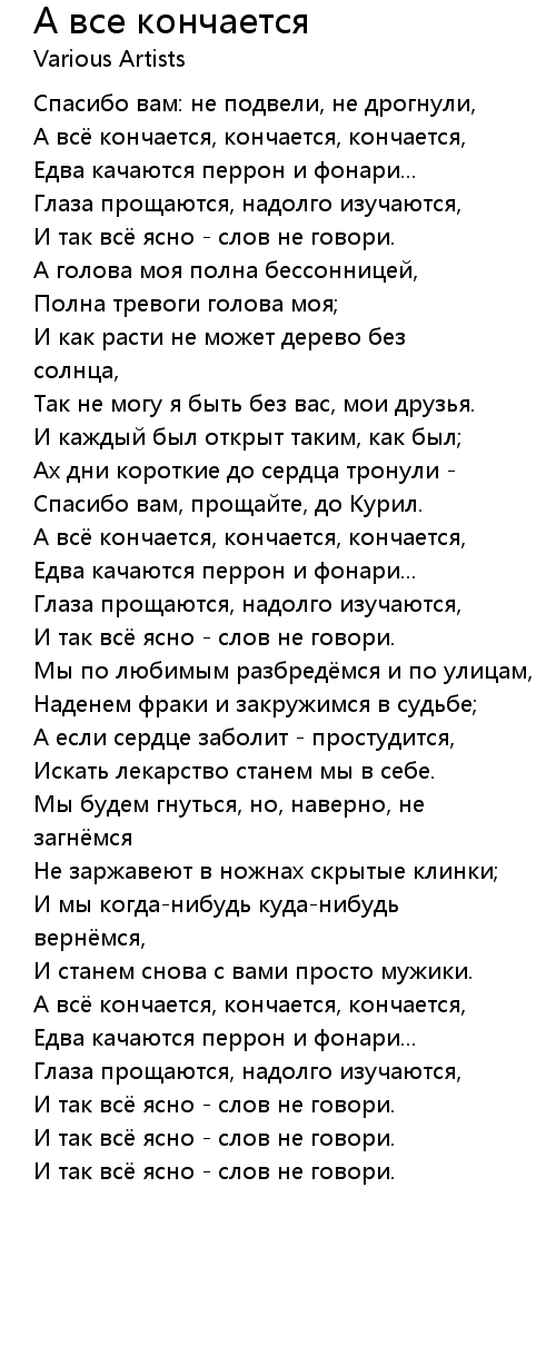 А всё кончается, кончается, кончается, |