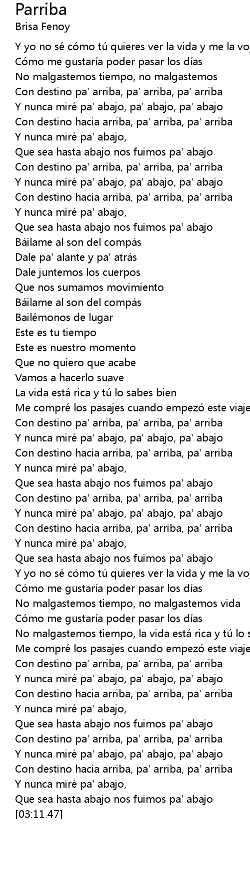 | [02:35.38] | Con destino pa' arriba, pa' arriba, pa' arriba |