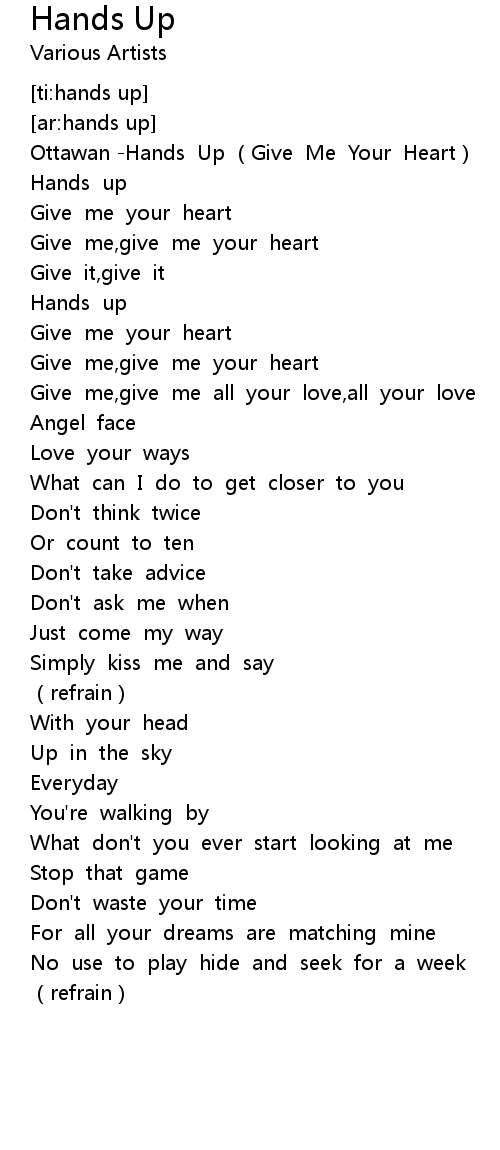 | [00:03.537] | Ottawan -Hands Up (Give Me Your Heart) |