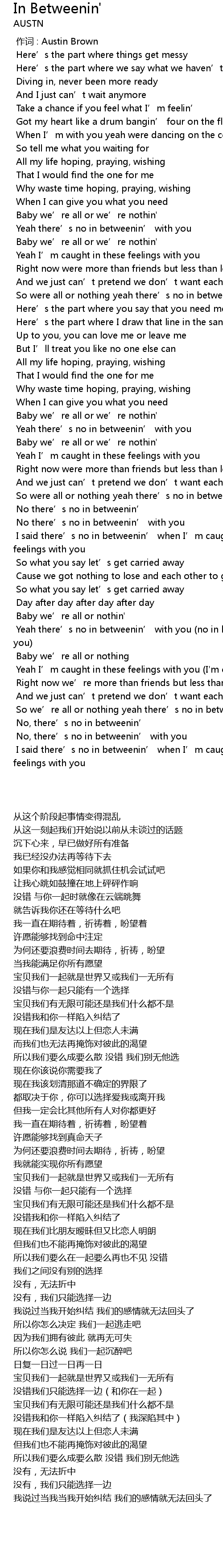 | [02:33.647] | Yeah there' s no in betweenin' with you no in betweenin' with you |