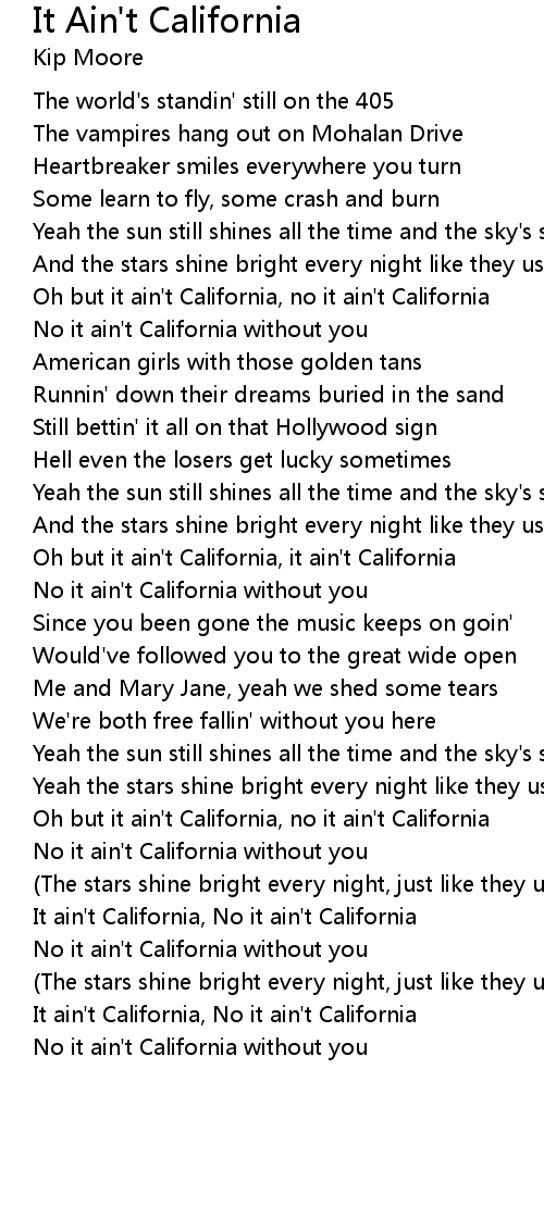 Oh but it ain't California, no it ain't California |