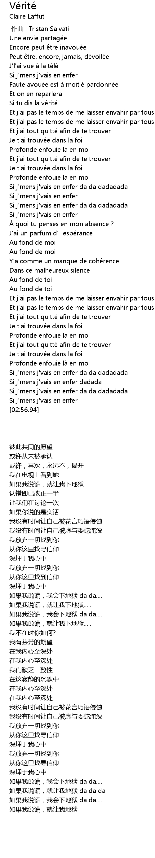 | [02:48.67] | Si j'mens j'vais en enfer da da dadadada |