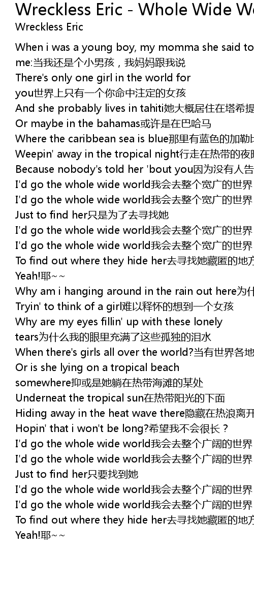 | I' d go the whole wide world wo hui qu zheng ge kuan guang de shi jie | |