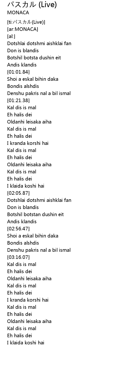 | [01:13.58] | Denshu pakris nal a bil ismal |
