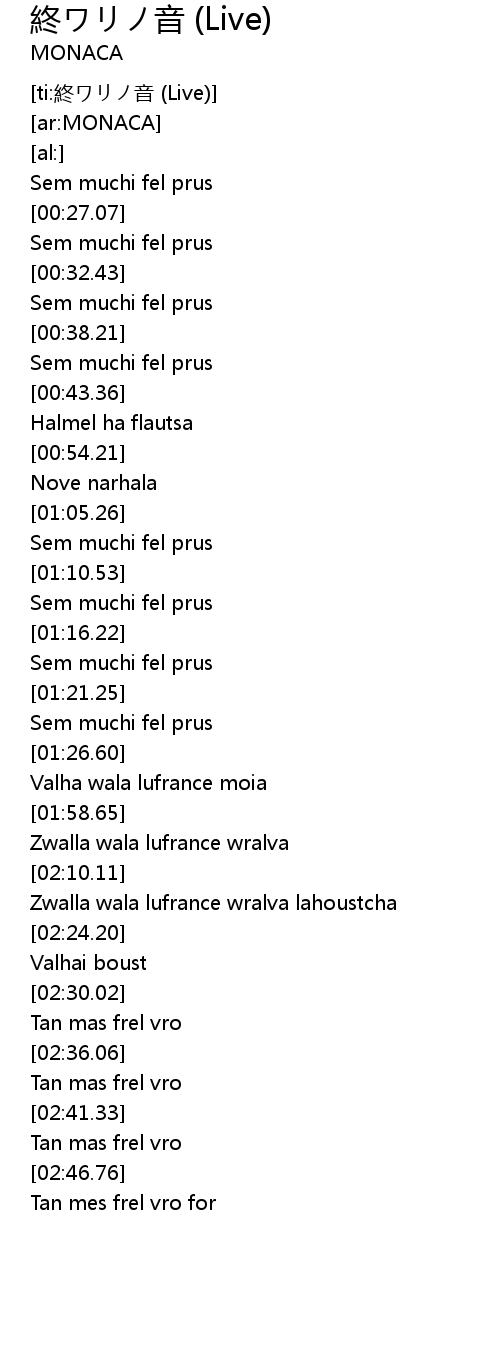 | [02:10.28] | Zwalla wala lufrance wralva lahoustcha |