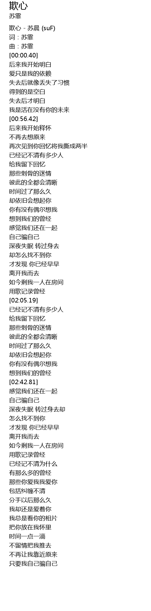 | [00:00.10] | 欺心 - 苏晨 (suF) |