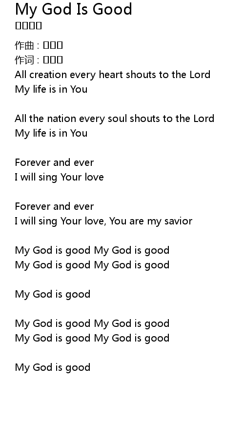 | My God is good | |
